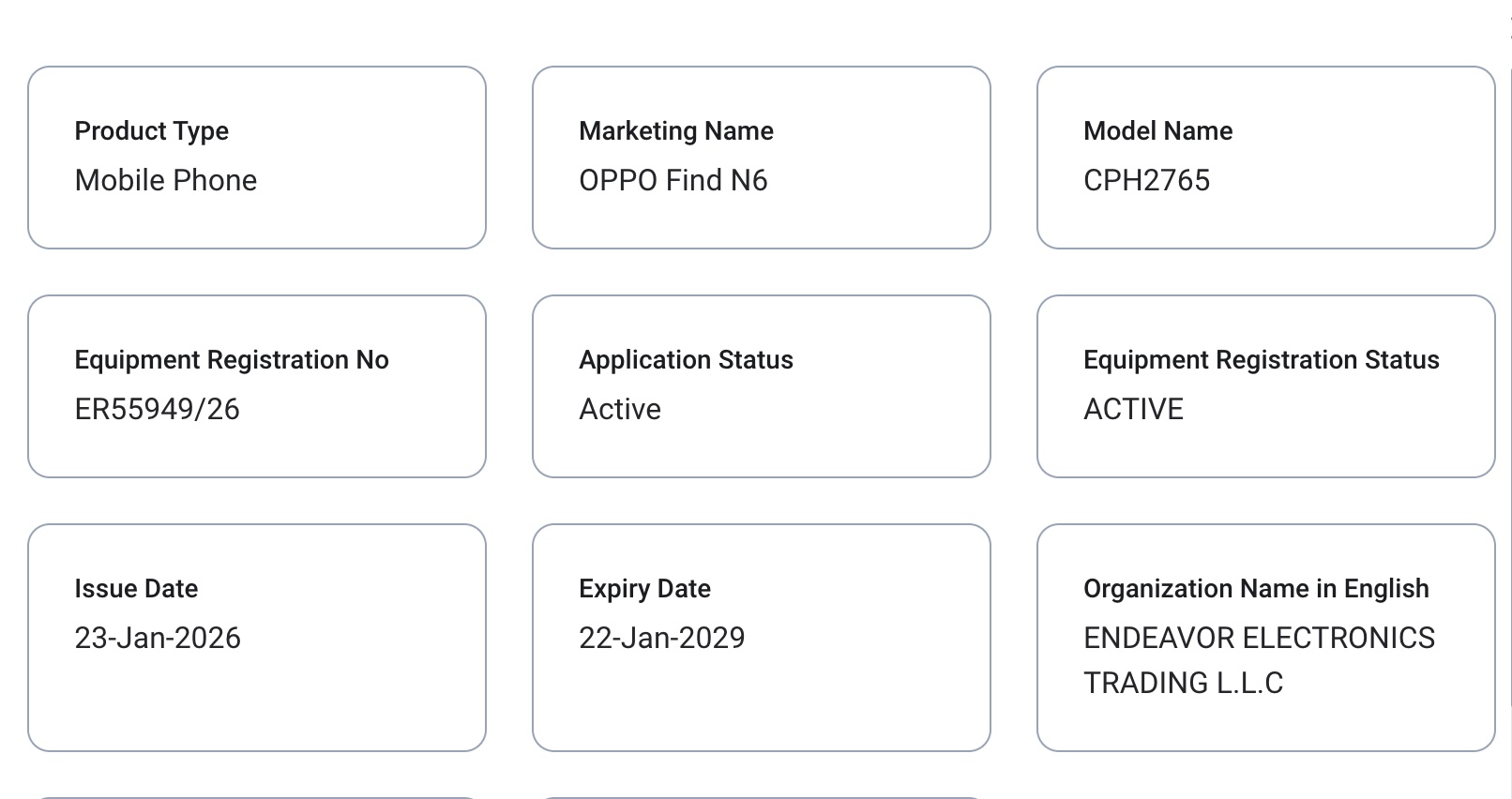 Een nieuwe vermelding op de regelgevende instantie TDRA in de VAE bevestigt het modelnummer van de wereldwijde Oppo Find N6. In tegenstelling tot het Chinese model, dat het modelnummer "PLP110" draagt, staat de wereldwijde variant vermeld als "CPH2765"