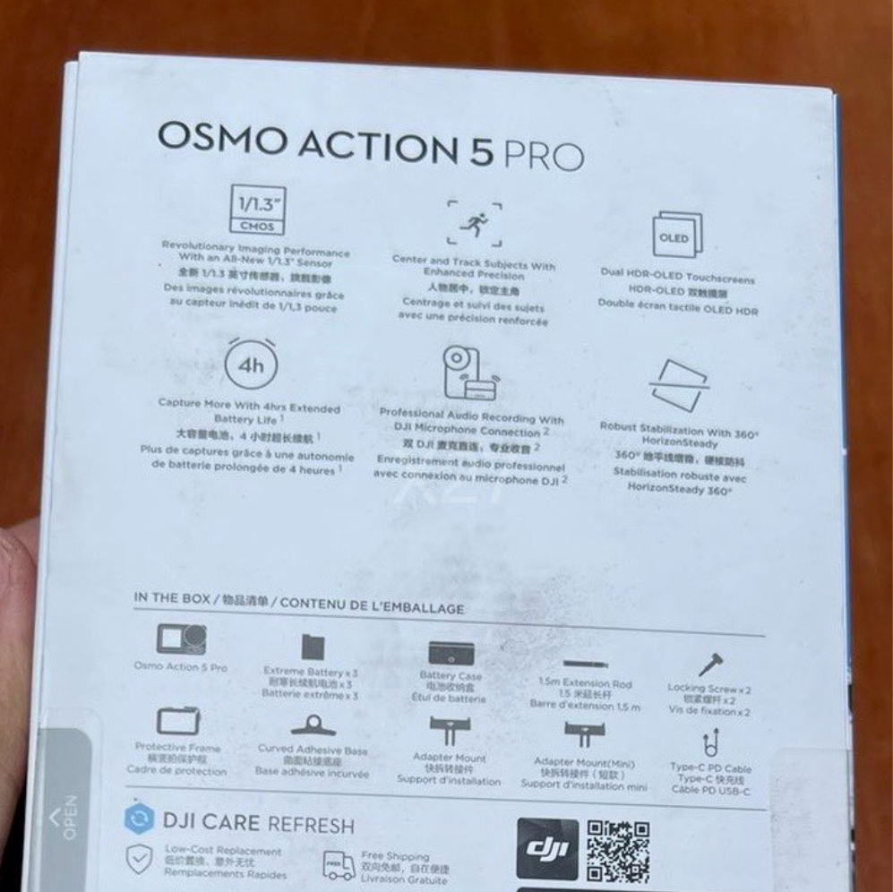 Het lijkt er echter op dat DJI van plan is om de Osmo Action 5 Pro op de markt te brengen met een "geheel nieuwe" camera. Het valt dus nog te bezien hoe het bedrijf erin geslaagd is om zijn nieuwste actiecamera in dit opzicht te onderscheiden van zijn voorganger. Niettemin bevestigt de uitgelekte verkoopverpakking dat de Osmo Action 5 Pro ook een groter OLED-touchscreen aan de achterkant zal hebben, evenals een batterij die tot 4 uur meegaat. Hoewel een releasedatum vooralsnog onbekend is, is wel bekend dat de actiecamera precisietracking, 360° HorizonSteady en DJI Mic 2 integratie zal ondersteunen.