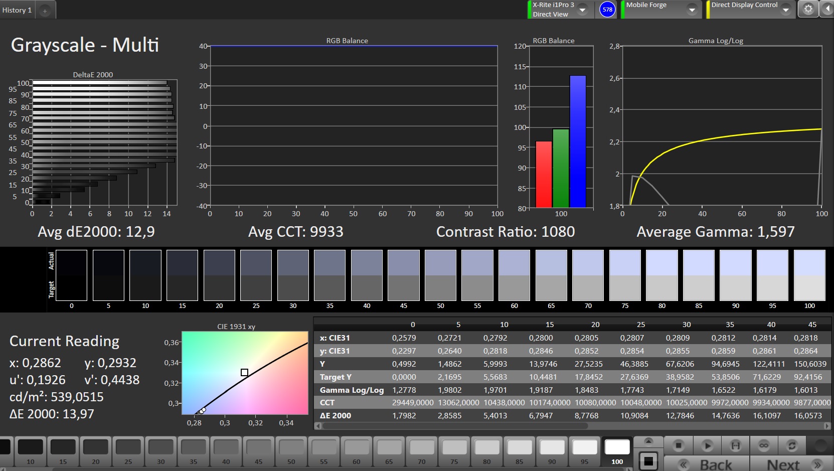 ΔE Greyscale Calman: 12.9 | ∀{0.09-98 Ø5}