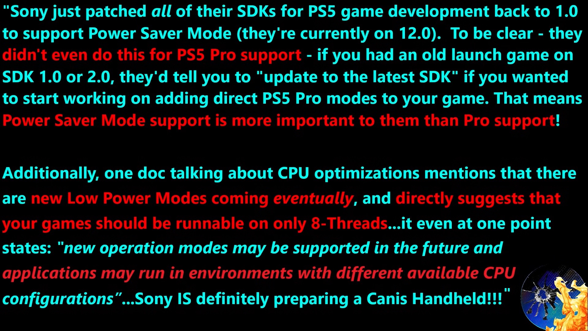 Sommige mensen, zoals Moore's Law Is Dead, zien Sony aandringen op Low Power- en Power Saver-modi voor PS5 games als een gevolg van het feit dat het bedrijf ervoor wil zorgen dat PS5-games naadloos werken op de minder krachtige PS6-handheld wanneer deze wordt gelanceerd. Moore's Law Is Dead meldt nu dat Sony alle PS5 Software Development Kits (SDK's) heeft gepatcht naar versie 1.0 "om Power Saver Mode te ondersteunen". Dit betekent dat de PS5 Spaarstand nu standaard in de nieuwste SDK's zit.