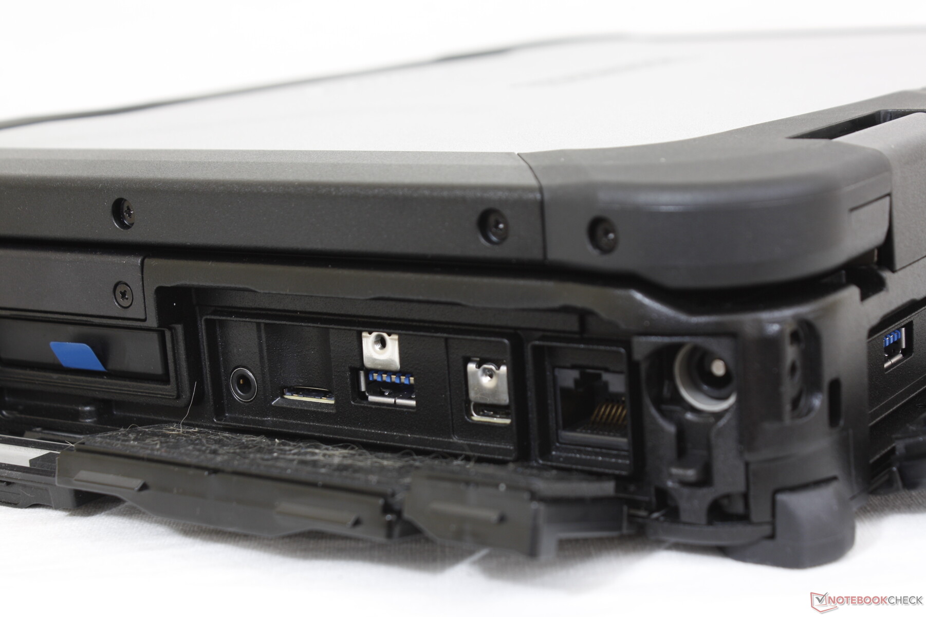 Een vervelend probleem met al deze sleuven is dat de kleppen die ze afdekken erg pietluttig zijn en moeilijk te openen en te vergrendelen, vooral als je kleinere handen of vette vingers hebt. Er is gewoon niet genoeg grip op deze kleppen om ze comfortabel in gebruik te maken. De kleppen langs de randen van de Dell Latitude 7330 Rugged zijn veel gemakkelijker vast te pakken en te hanteren in vergelijking.