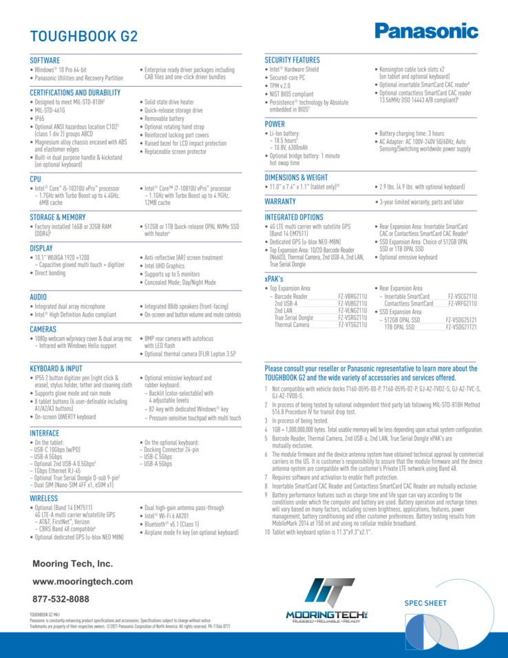 De volledige lijst met kenmerken is te vinden op Panasonic's officiële productpagina voor de Toughbook FZ-G2.