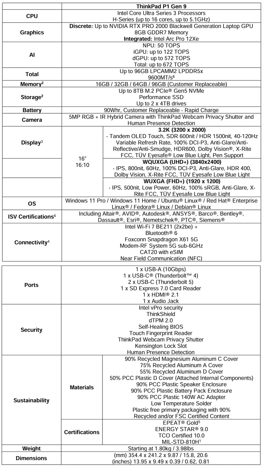 Lenovo ThinkPad P1 Gen 9: Prijzen en beschikbaarheid