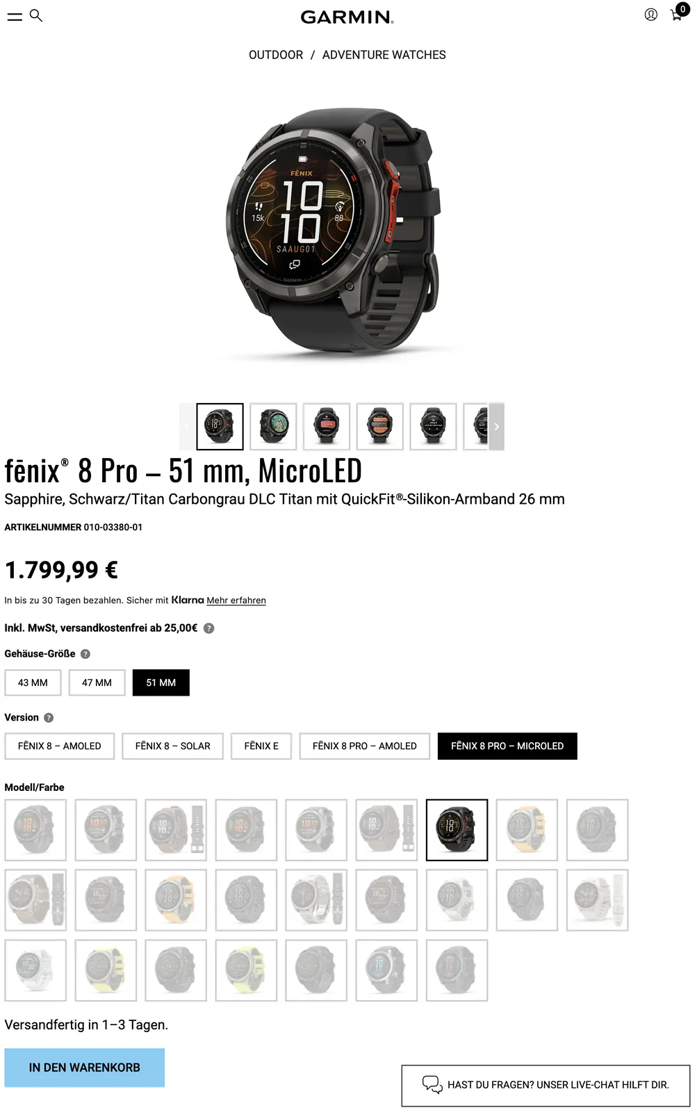 Ondertussen is er in het Verenigd Koninkrijk een verschil van £300 tussen de Fenix 8 Pro-varianten, waarbij de MicroLED-variant is gedaald naar £1.499,99. Het lijkt erop dat deze prijswijzigingen ook blijvend zijn, aangezien Garmin voor geen van beide een verkoopprijs vermeldt. Houd er rekening mee dat Garmin de Fenix 8 Pro MicroLED alleen aanbiedt als een 51 mm smartwatch. Meer details over de Fenix 8 Pro en het optionele 4.500-nit display kunt u vinden in ons artikel over de lancering.