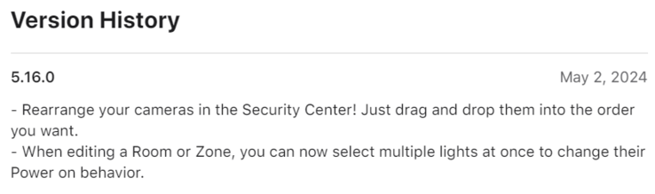 Versie 5.16.0 van de Philips Hue-app brengt een update voor beveiligingsapparaten zoals de Secure Battery Camera, of de Secure schijnwerpercamera die eerder dit jaar werd uitgebracht. In het Beveiligingscentrum kunt u nu de volgorde kiezen waarin uw beveiligingscamera's worden weergegeven; gadgets kunnen opnieuw worden gerangschikt met behulp van een sleepfunctie. De tweede update in de release notes heeft betrekking op het bewerken van een kamer of zone. Gebruikers kunnen nu meerdere slimme lampen selecteren, zodat u tegelijkertijd hun Aan/Uit-instellingen kunt aanpassen.