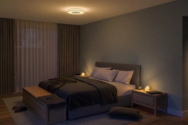 De Being plafondlamp biedt dimbare witte verlichting met een helderheid tot 2.350 lm. Er worden 50.000 tinten aangeboden, variërend van een warmere kleurtemperatuur van 2.200K tot koelere tinten rond 6.500K. De LED-lichtbron gaat naar verwachting ongeveer 25.000 uur mee. Het licht wordt verspreid met een centrale kap en banden aan de zijkanten, wat moet resulteren in een halo-effect op uw plafond. Philips Hue suggereert dat dit de slimme lamp geschikt maakt voor verschillende kamers in uw huis, zoals een slaapkamer of hal. Net als bij andere producten van het merk, kunt u de Being rechtstreeks via Bluetooth bedienen en verbinden met andere smart home gadgets, of een Hue Bridge gebruiken voor meer functies.