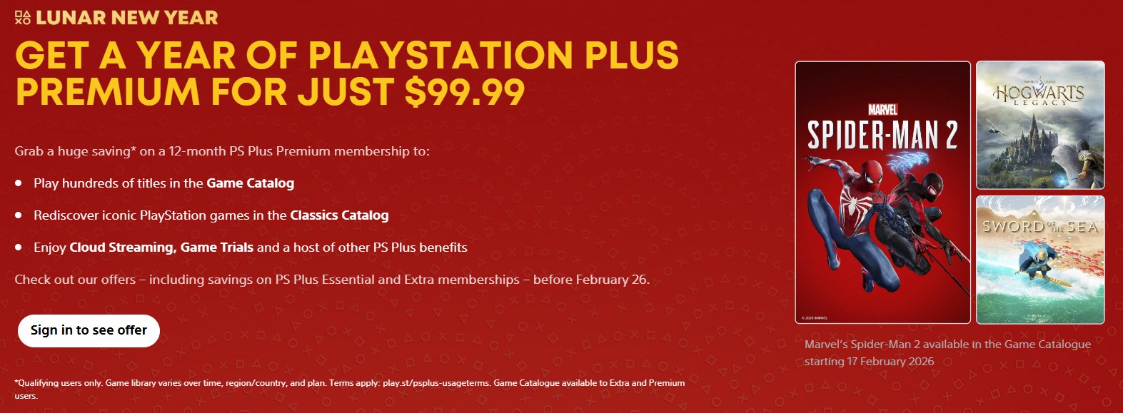 PlayStation Plus Premium en Extra zien een grote prijsdaling tijdens Sony's Lunar New Year-uitverkoop