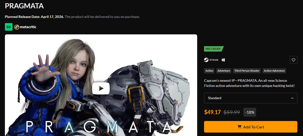 Nieuwe releases krijgen meestal niet zo vroeg korting. In de meeste gevallen moeten spelers weken of zelfs maanden wachten voordat ze prijsverlagingen te zien krijgen. Dat is hier echter niet het geval. Op Fanatical is Pragmata al verkrijgbaar met 18% korting, waardoor de prijs is gedaald van $59,99 naar $49,17.