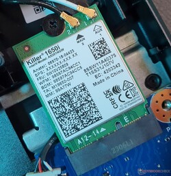 De geïnstalleerde Intel Killer AX1650i WLAN-module van de laptop komt overeen met de oudere WiFi 6-standaard en is met overdrachtsnelheden van ~900 MBit/s van een vergelijkbaar traag niveau als de Realtek-chip in de Lenovo LOQ 16.