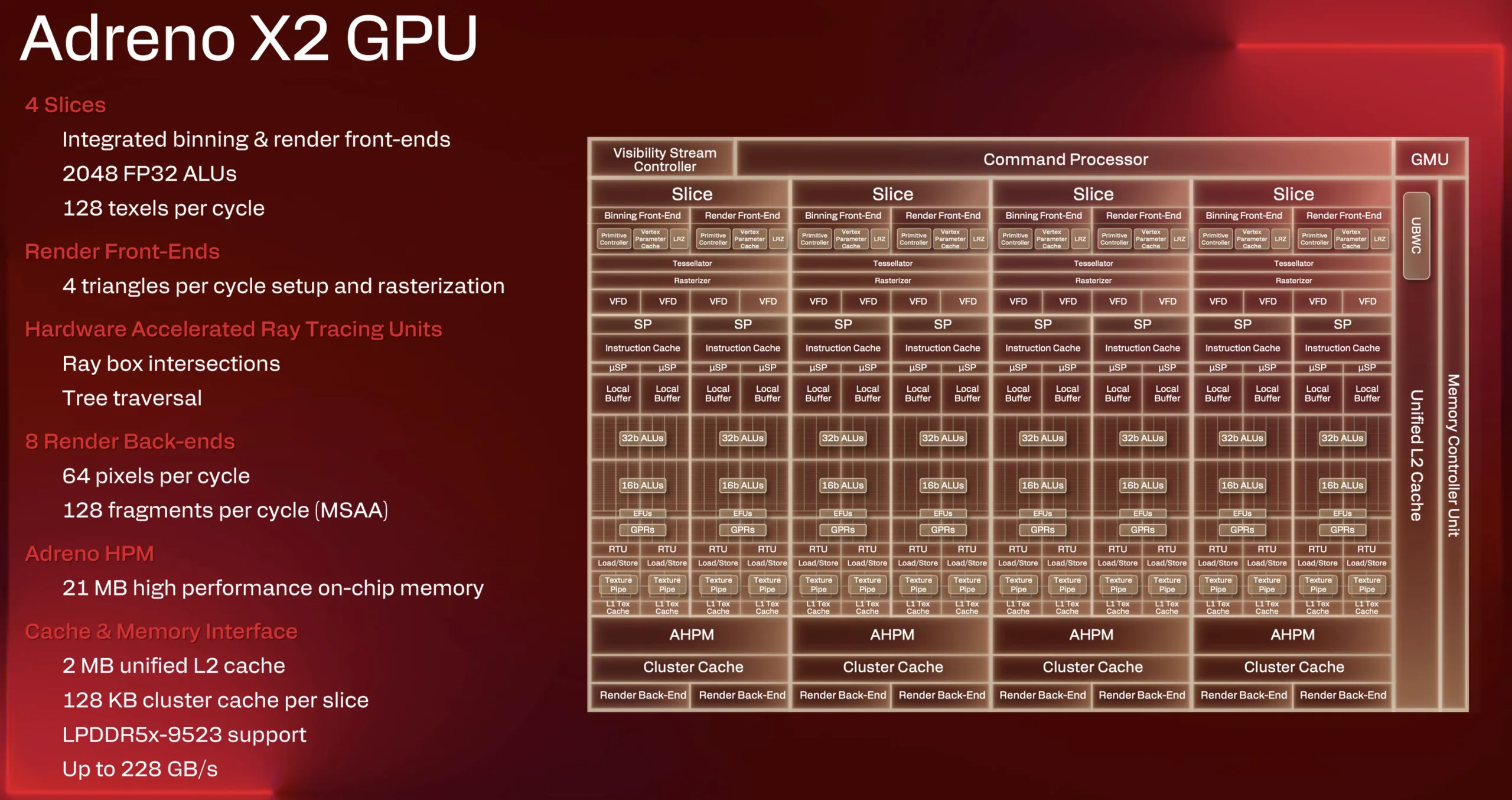 Qualcomm heeft ook de GPU en NPU verbeterd, maar de informatie over de hardwareveranderingen is beperkt. De prestaties zouden veel beter zijn en we zijn benieuwd om deze beweringen te testen, aangezien de GPU-prestaties van de eerste generatie Snapdragon X-chips absoluut een zwak punt waren in vergelijking met AMD en Intel. GPU-stuurprogramma-updates zullen beschikbaar zijn via Qualcomm's eigen Snapdragon-controlepaneel en niet alleen via laptopfabrikanten. De nieuwe Qualcomm Hexagon NPU biedt 80 TOPS aan AI-verwerking en voldoet daarmee aan de vereisten van Microsofts Copilot+-certificering. De maximale hoeveelheid geheugen is 128 GB (LPDDR5x-9523) met een maximale bandbreedte van 228 GB/s.