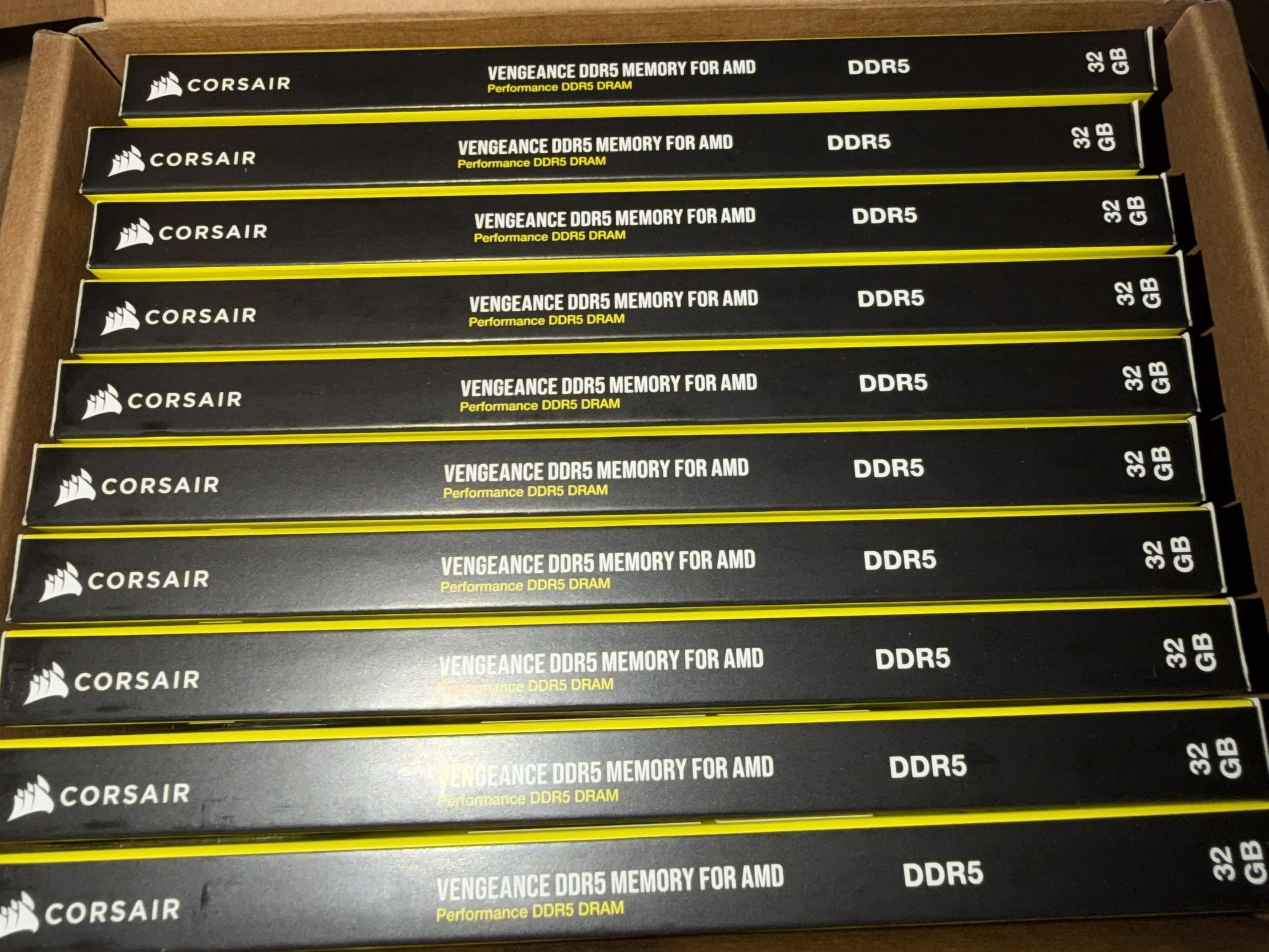 De gebruiker betaalde $300 voor een enkele 32 GB Corsair Vengeance DDR5-kit en ontving een doos met in totaal 10 kits. De fout kan zijn ontstaan in het magazijn, waar een medewerker één kit verkeerd heeft geïnterpreteerd als één doos. In wezen kregen ze voor $2700 aan gratis geheugen - 320 GB in totaal. Op het moment van schrijven kosten vergelijkbare kits ongeveer $400 op Amazon.