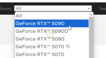 De gelekte line-up omvat vijf kaarten: de RTX 5090, RTX 5090D, RTX 5080, RTX 5070 Ti en RTX 5070. Hoewel de website van de fabrikant deze details niet ronduit liet zien, gaven enkele gefilterde vermeldingen veel prijs over deze aankomende GPU's.