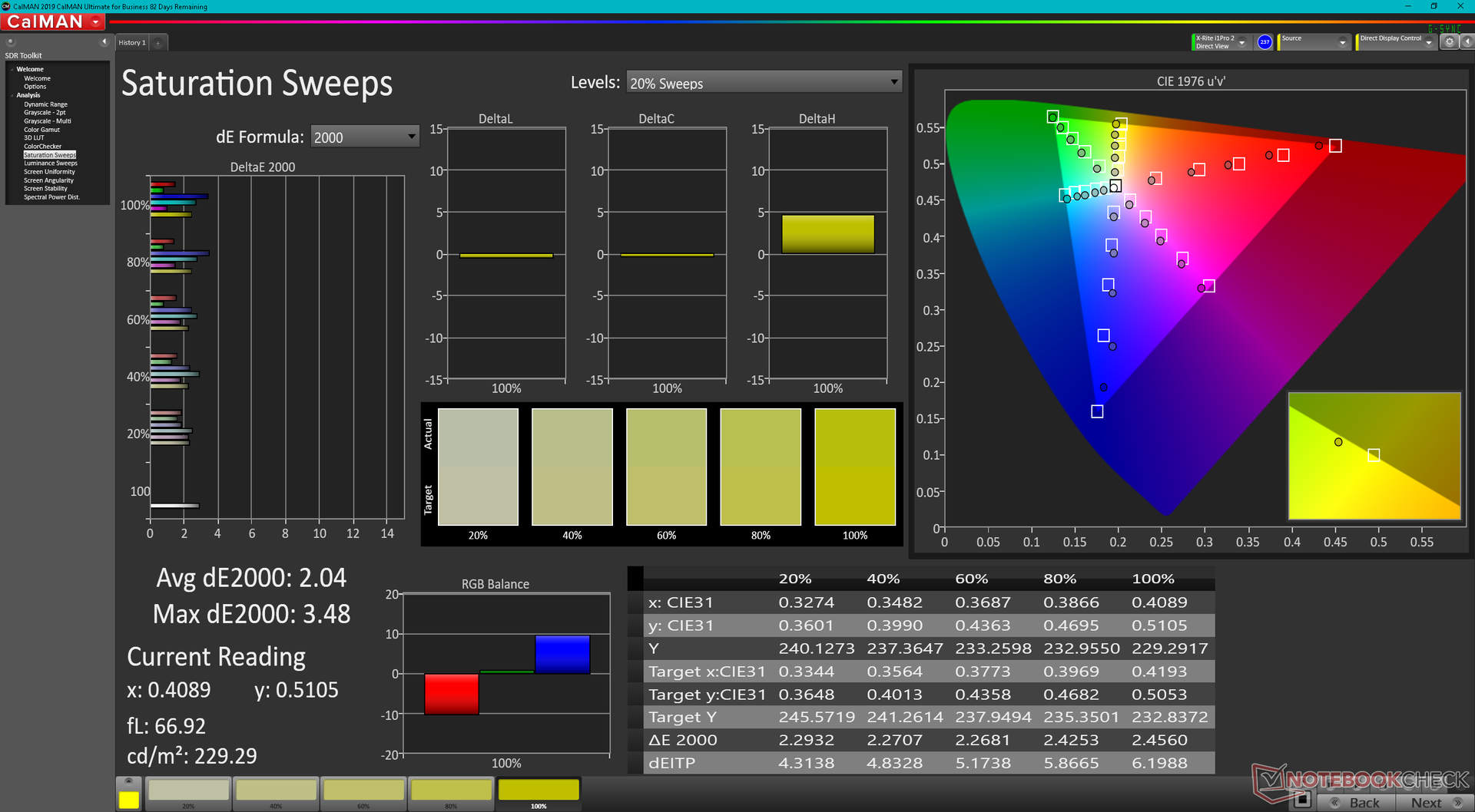 | Display P3 Coverage (%) | 63.7 | 80.4 26% | 70.5 11% | 98 54% | 68.8 8% | |
