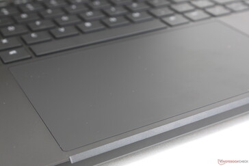 Terwijl het toetsenbord geen veranderingen onderging, is het clickpad nu veel ruimer dan voorheen (15 x 8,5 cm vs. 11,1 x 7,6 cm) en daarmee een van de grootste op een 14-inch subnotebook. De grip is soepel en multi-touch inputs zijn bijzonder gemakkelijk uit te voeren dankzij het grotere oppervlak. Feedback bij het klikken blijft zacht en zeer stil in plaats van stevig en klikkend.