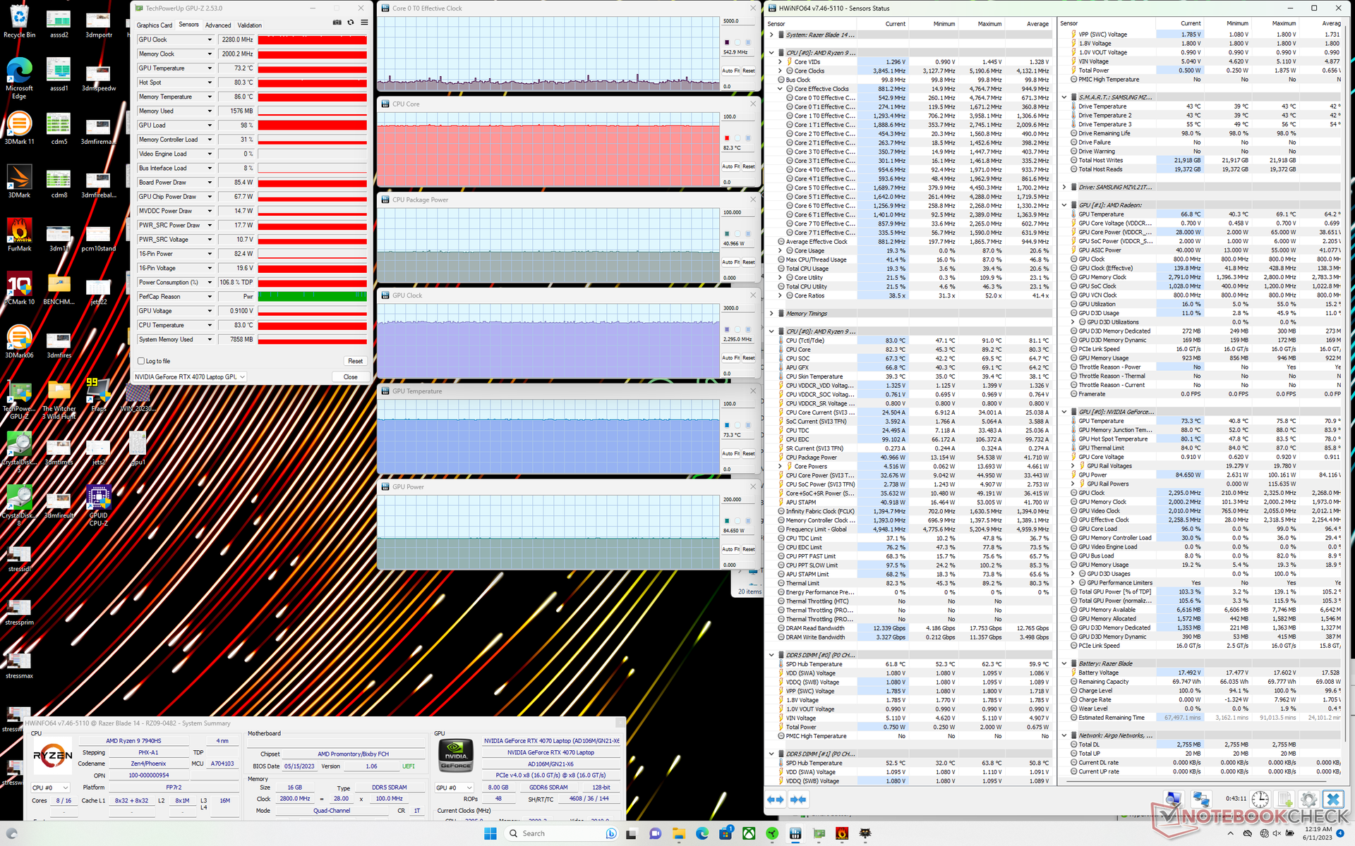 Interessant is dat het stroomverbruik bijna 2x zo hoog is als bij het RTX 3070 Ti model van vorig jaar bij stationair draaien op de desktop bij de laagste energie-instellingen, wat verantwoordelijk kan zijn voor de korter dan verwachte batterijlevensduur in de volgende sectie. Anders zou het verbruik tijdens het gamen slechts een paar watt meer zijn om de toename van 15 tot 25 procent in grafische prestaties meer dan waard te zijn.