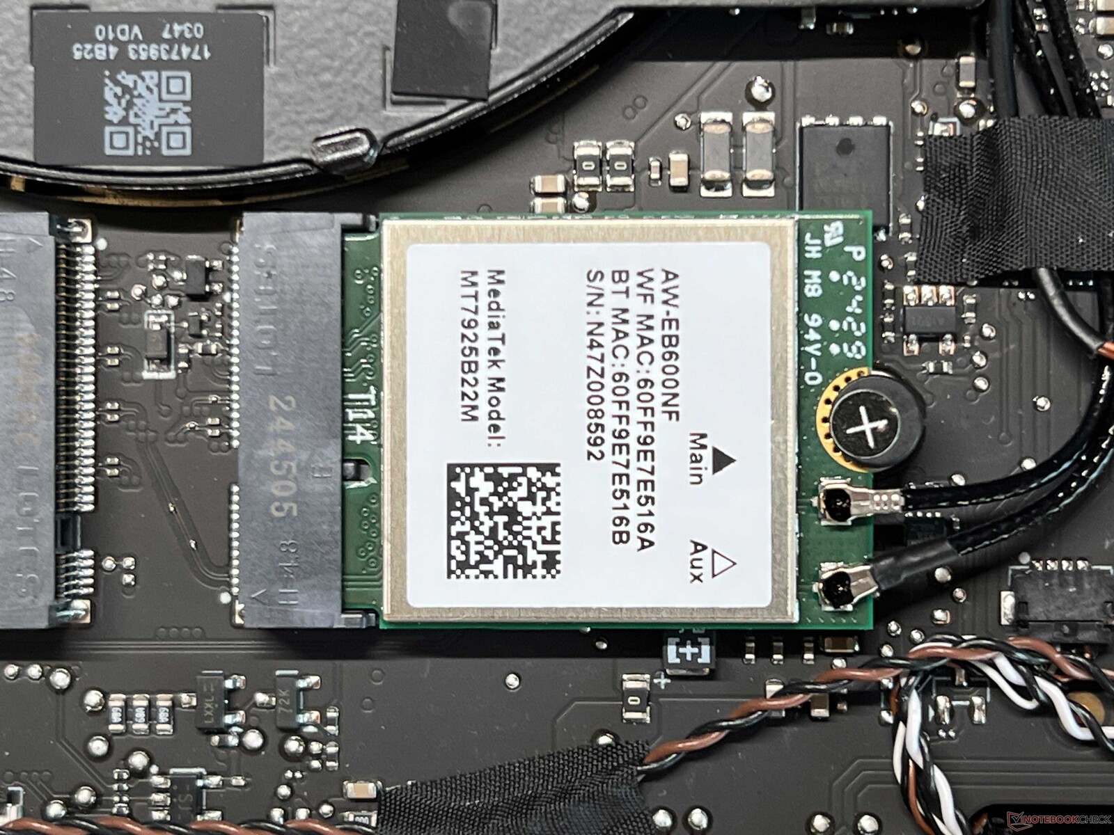 Het onderste deksel van de behuizing wordt vastgezet met slechts een paar schroeven en kan zonder problemen worden verwijderd. Binnenin zijn er enkele grote verschillen met het oud modelde koeling met zijn enorme dampkamer en de batterij (vastgeschroefd) domineren nu. Er zijn ook twee sleuven voor M.2-2280 SSD's, en indien nodig kan de WLAN-module worden vervangen. Het RAM-geheugen is echter gesoldeerd.