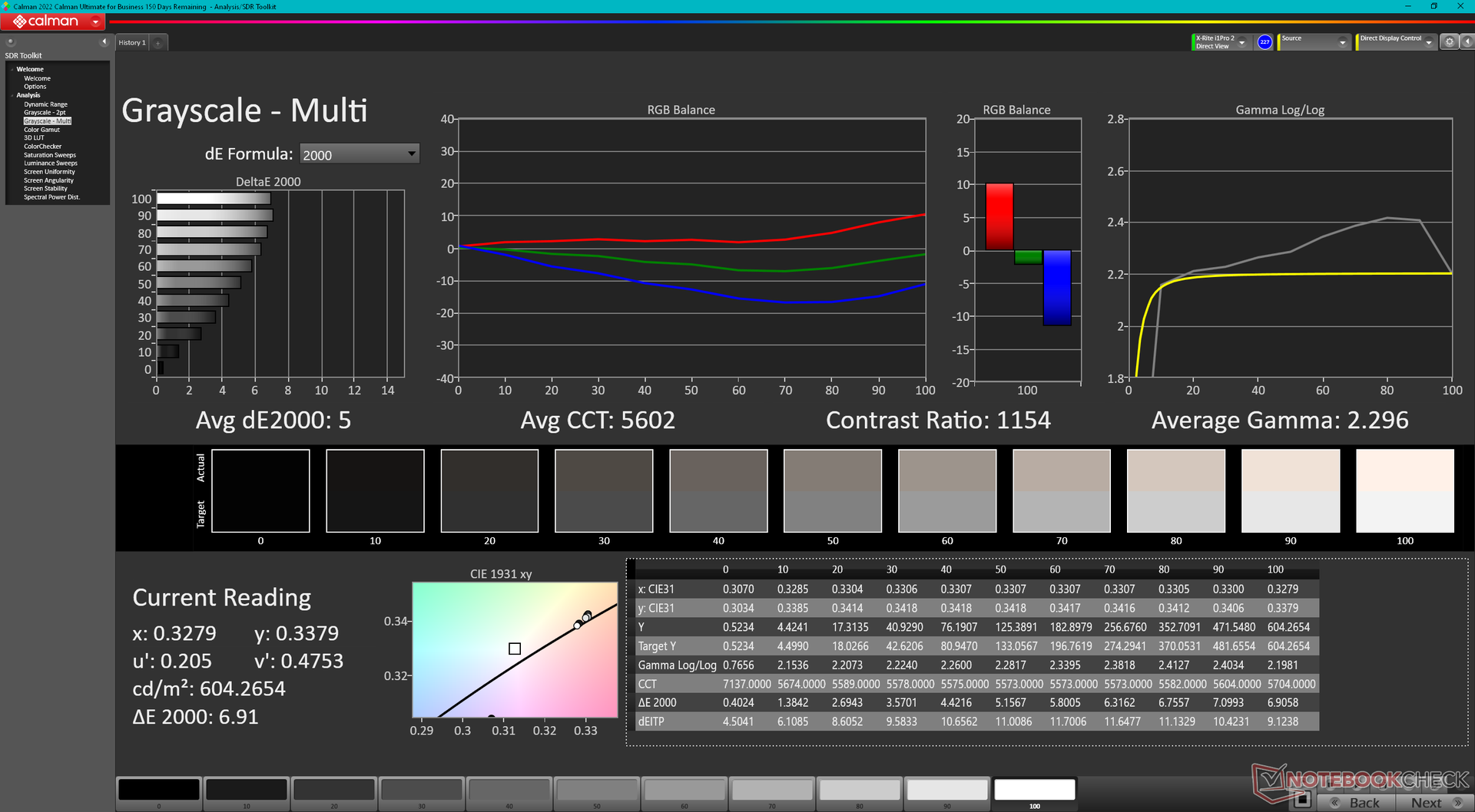 ΔE Greyscale Calman: 2.6 | ∀{0.09-98 Ø5}