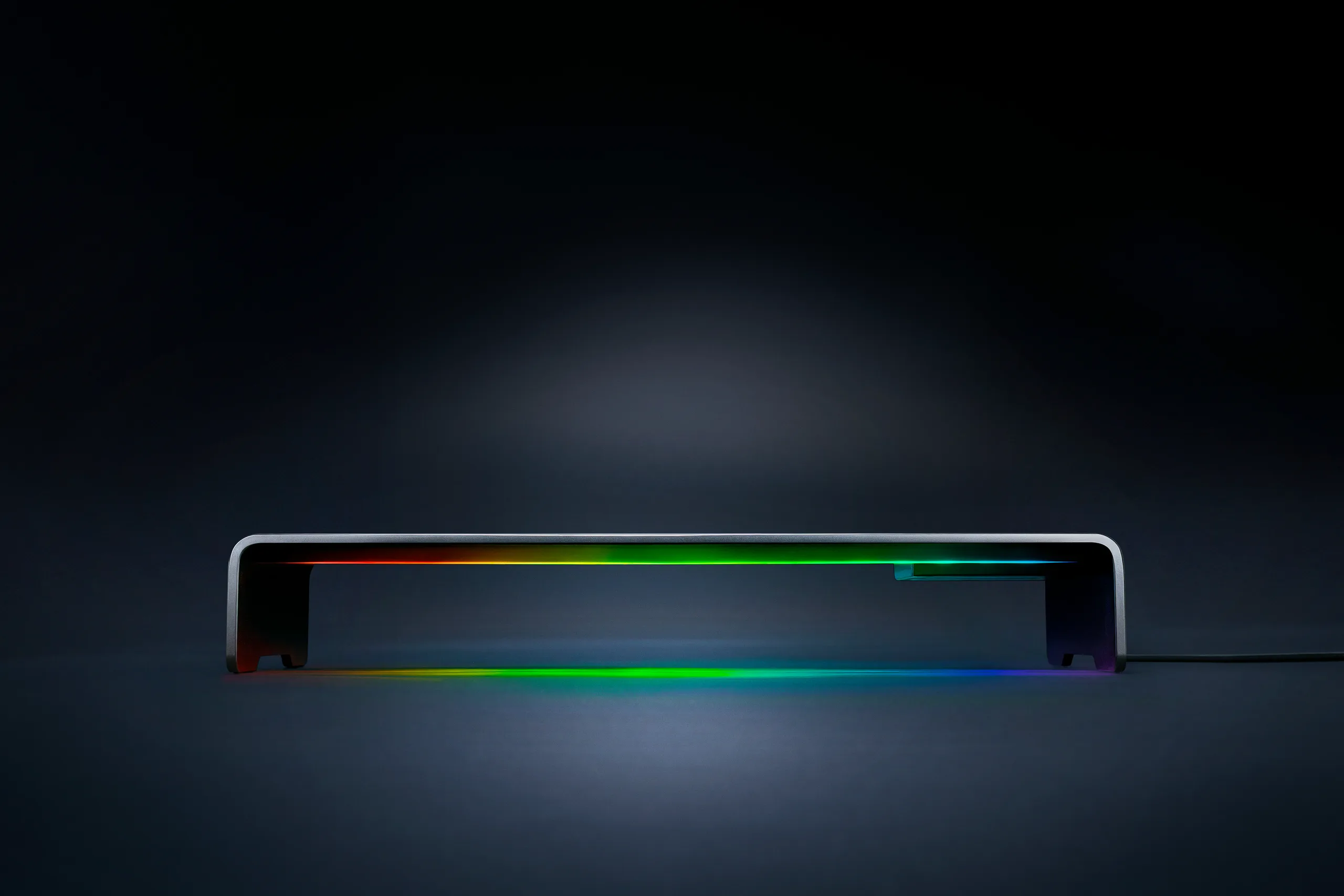 Maak kennis met de Razer Monitor Stand Chroma - Verhoog. Organiseren. Verlichten. Met een lengte van 19,7 inch en een breedte van 8,27 inch brengt de Razer Monitor Stand Chroma monitors omhoog om werkplekken overzichtelijk te houden. Deze ergonomische standaard integreert naadloos in elke gaming-slagstation of professionele omgeving, met Razer Chroma RGB-verlichting en essentiële aansluitmogelijkheden in een slank, ruimtebesparend ontwerp.