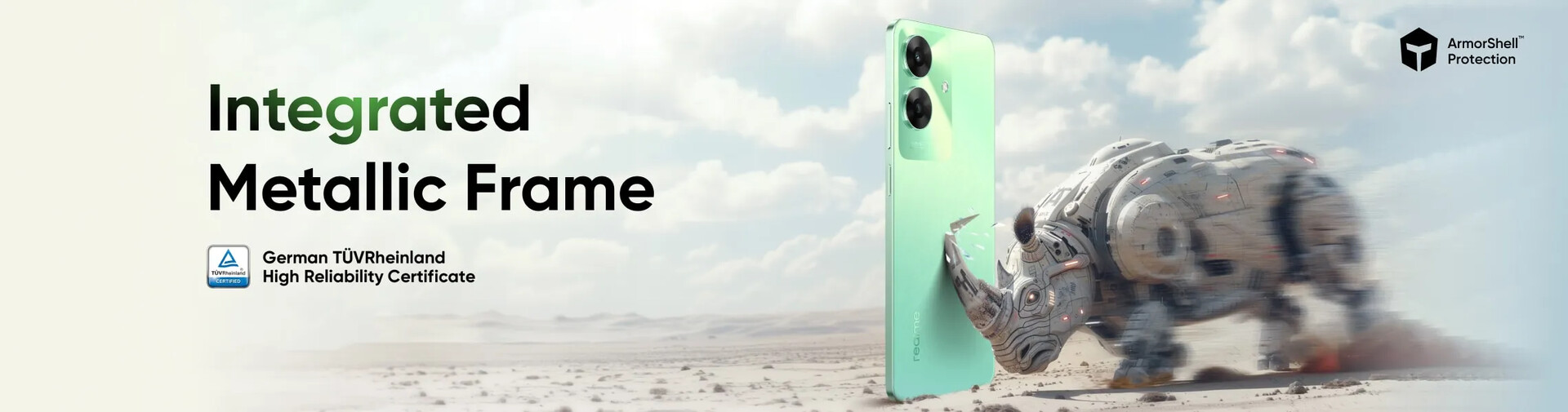 De C61 zal ook debuteren als een early adopter van TÜV Rheinland's nieuwe High Reliability Certificate, dat is afgeleid van Realme's nieuwe handelsmerk PantserShell Bescherming en Versterkt Glas voor het scherm - hoewel dat niet verhindert dat het een waterdruppelachtige inkeping heeft.