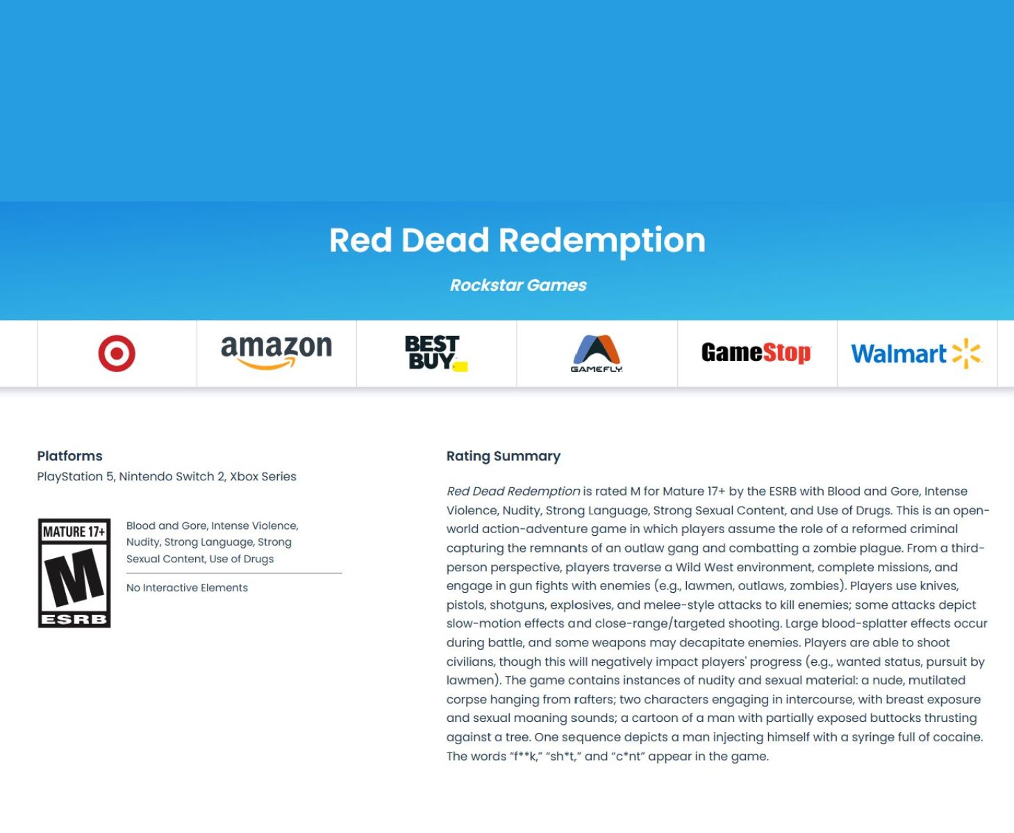 De ESRB heeft een nieuwe classificatie gepubliceerd voor Red Dead Redemption met daarin PlayStation 5, Nintendo Switch 2 en Xbox-serie consoles als ondersteunde platforms. Dit is een actie-avonturentitel uit 2010 die is uitgebracht op PS3 en Xbox 360en later opnieuw uitgebracht voor PS4 en Nintendo Switch in 2023, en uiteindelijk voor het eerst beschikbaar gemaakt op PC op 29 oktober 2024. De onlangs bijgewerkte classificatiepagina suggereert dat Rockstar Games mogelijk nog een ronde van ports voor hardware van de huidige generatie voorbereidt.
