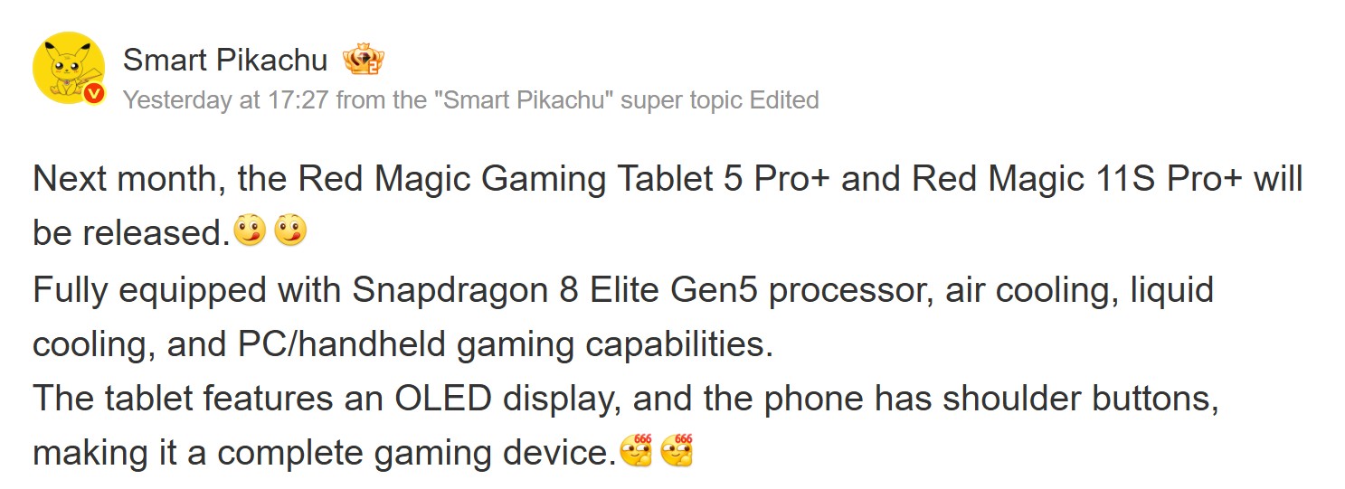 Nu suggereert een nieuw rapport van Smart Pikachu, een opmerkelijke leaker, dat de gaming-tablet om de hoek ligt. De lancering staat gepland voor mei 2026 en RedMagic lanceert zijn producten meestal kort na hun Chinese debuut wereldwijd.