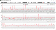 Het scenario van de extreme stresstest (Prime95 en Furmark in continubedrijf) controleerde de stabiliteit van het systeem onder volledige belasting. De CPU werkte aan het begin van de test op hoge kloksnelheden, maar werd daarna teruggedraaid naar waarden onder de 2 GHz. De GPU werkte op vol vermogen.