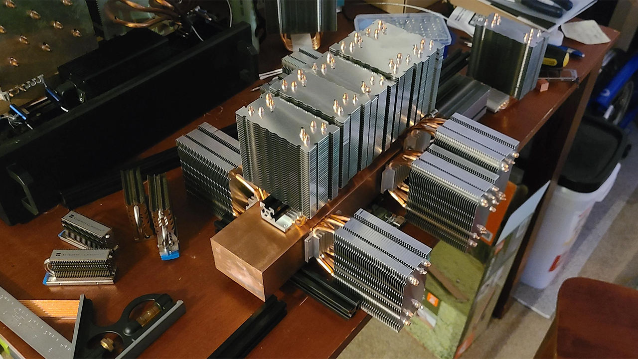 Hoewel het project nog steeds een prototype is, geeft het wel een idee van wat u mogelijk moet doen om een RTX 3080 grafische kaart passief gekoeld te krijgen. Zoals Redditor laat zien, heeft het project in totaal tien CPU koellichamen. Ze zitten allemaal bovenop een dikke koperen staaf. U kunt het prototype bekijken op de afbeeldingen die aan het einde zijn bijgevoegd.