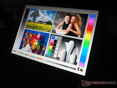 Ondertussen blijven de verschillen in contrast binnen redelijke grenzen. Door het hogere zwartniveau van het scherm (0,3 vs. 0,22 cd/m²), blijft de Intel-versie enigszins achter bij de AMD-variant. Dat gezegd hebbende, is een contrast ratio van 1.343:1 nog steeds een respectabel cijfer voor een IPS beeldscherm. We willen vooral de hoge kleurnauwkeurigheid complimenteren: direct uit de doos bevindt de kleurweergave van het scherm zich al binnen het ideale bereik. We kunnen ook nauwelijks fouten vinden in de kleurdekking. Met 99% van sRGB, 75% van AdobeRGB en 74% van P3, zou het scherm de meeste gebruikers tevreden moeten kunnen stellen.