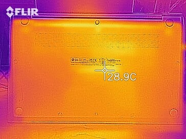 (±) De maximumtemperatuur aan de bovenzijde bedraagt 42.9 °C / 109 F, vergeleken met het gemiddelde van 35.9 °C / 97 F, variërend van 21.4 tot 59 °C voor de klasse Subnotebook.