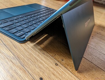 Het aluminium chassis is stevig voor een solide eerste indruk, wat indrukwekkend is als je bedenkt dat het zowel dunner als lichter is dan de Surface Pro en ook met smallere randen. De toetsenbordvoet is ook sterk, maar de aansluitpinnen komen te gemakkelijk los van de tablet.