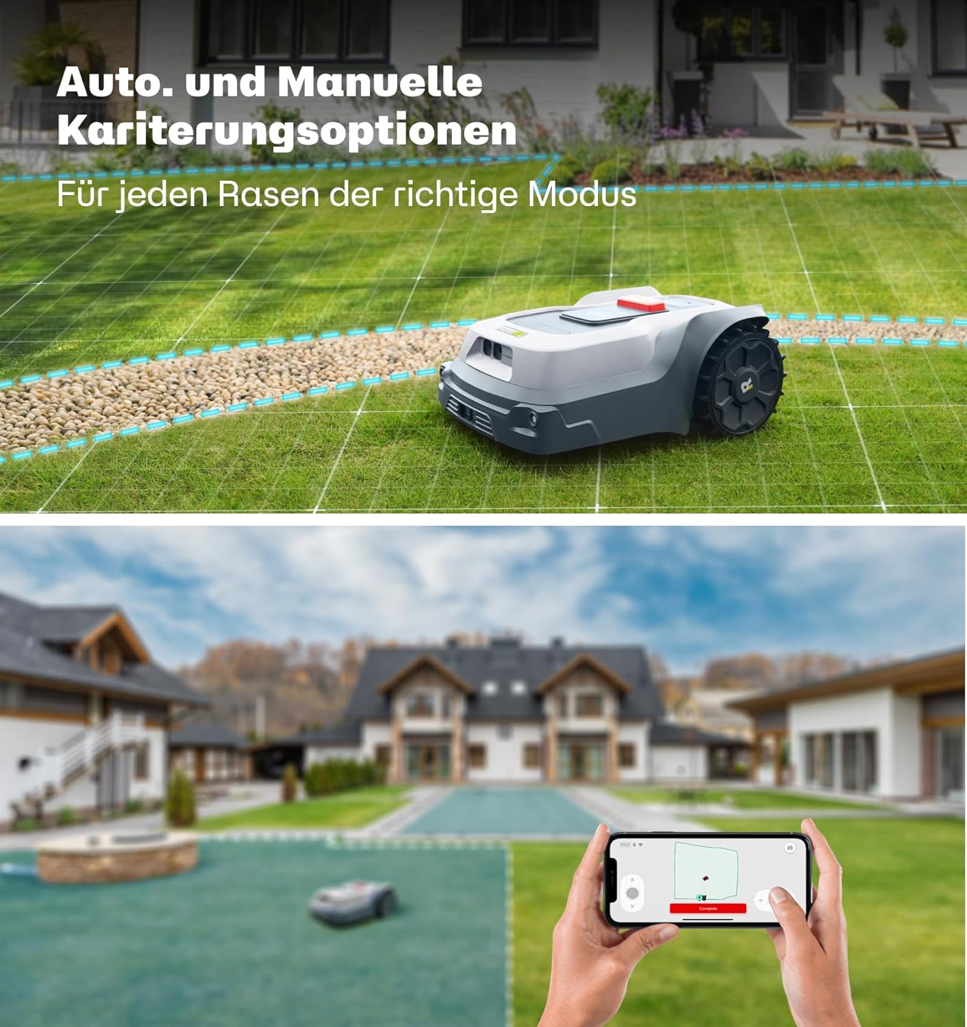 De nieuwe T1200Pro kan een groter gebied bestrijken dan de oudere apparaten en is geschikt voor tuinen tot 1.200m² (~13.000 ft²) groot. Andere upgrades omvatten een eersteklas RTK-systeem voor nauwkeurigheid op cm-niveau naast de VSLAM-technologie in de T1000P. Dankzij deze navigatietools hoeft u geen fysieke grensdraad in uw tuin te leggen en kan de robot automatisch een kaart van uw tuin maken. U kunt de bijbehorende app gebruiken om de kaart handmatig aan te passen, waarbij u tot tien maaigebieden en 50 uitsluitingszones kunt configureren. De app kan ook gebruikt worden om een schema op te stellen en instellingen zoals de maaihoogte aan te passen. Bovendien heeft de maaier AI Smart Eye obstakelvermijding en AI routeplanning, waarbij in parallelle lijnen wordt gemaaid voor een gestreept effect op uw gazon. Andere functies zijn een antidiefstalalarm en LED-verlichting, zodat de maaier ook 's nachts kan werken.