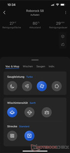 Met de S8 geselecteerd op de app, kun je spelen met zijn individuele instellingen. Als je op het kleine icoontje rechtsonder klikt, kun je kiezen tussen vier niveaus van zuigkracht, drie niveaus van dweilintensiteit en de voorkeursroute (standaard, snelle reinigingsmodus). Bovendien kun je kiezen of de robot moet dweilen, stofzuigen of beide moet doen - en of hij het hele niveau moet schoonmaken of alleen individuele kamers/zones. Handig, maar vrij standaard niet alleen op dit prijsniveau.