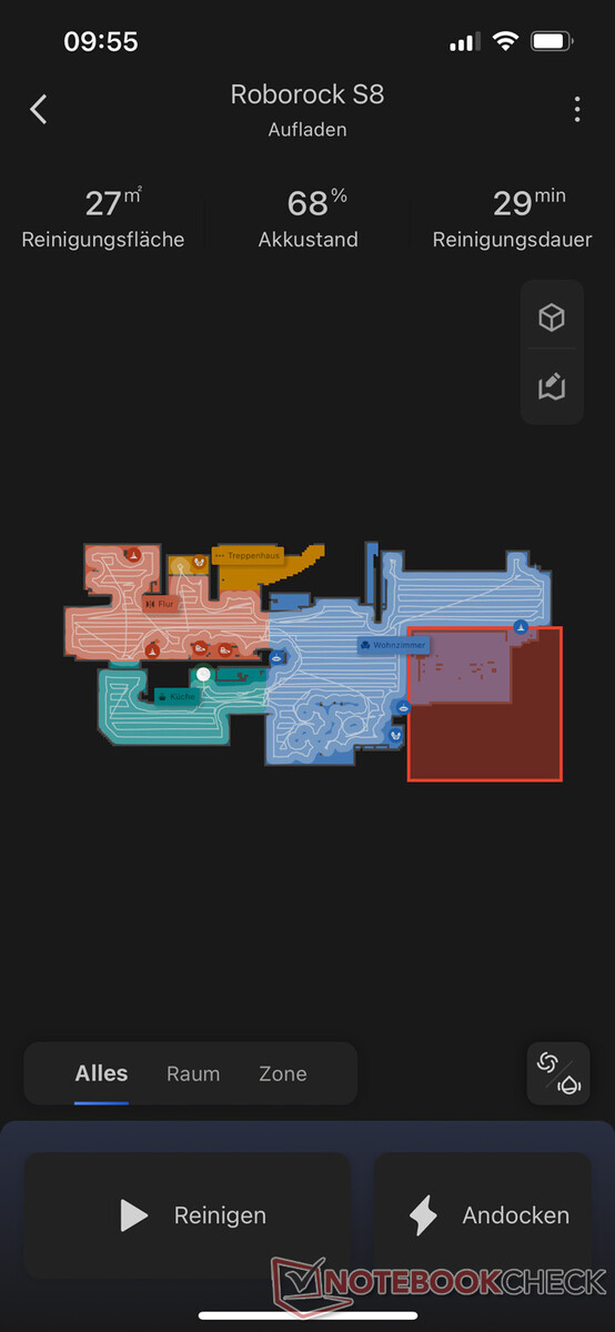 Bovendien kunt u instellingen maken voor elke afzonderlijke kamer. Daarvoor moet de robot eerst een rondje over je vloer maken, zodat hij een virtuele kaart kan maken. Vervolgens kun je deze op de app opslaan en bewerken. Dit betekent dat u individuele kamers kunt bepalen, verboden gebieden kunt instellen en een route kunt bepalen - zelfs voor meerdere verdiepingen. U kunt uw kaart ook in 3D bekijken.