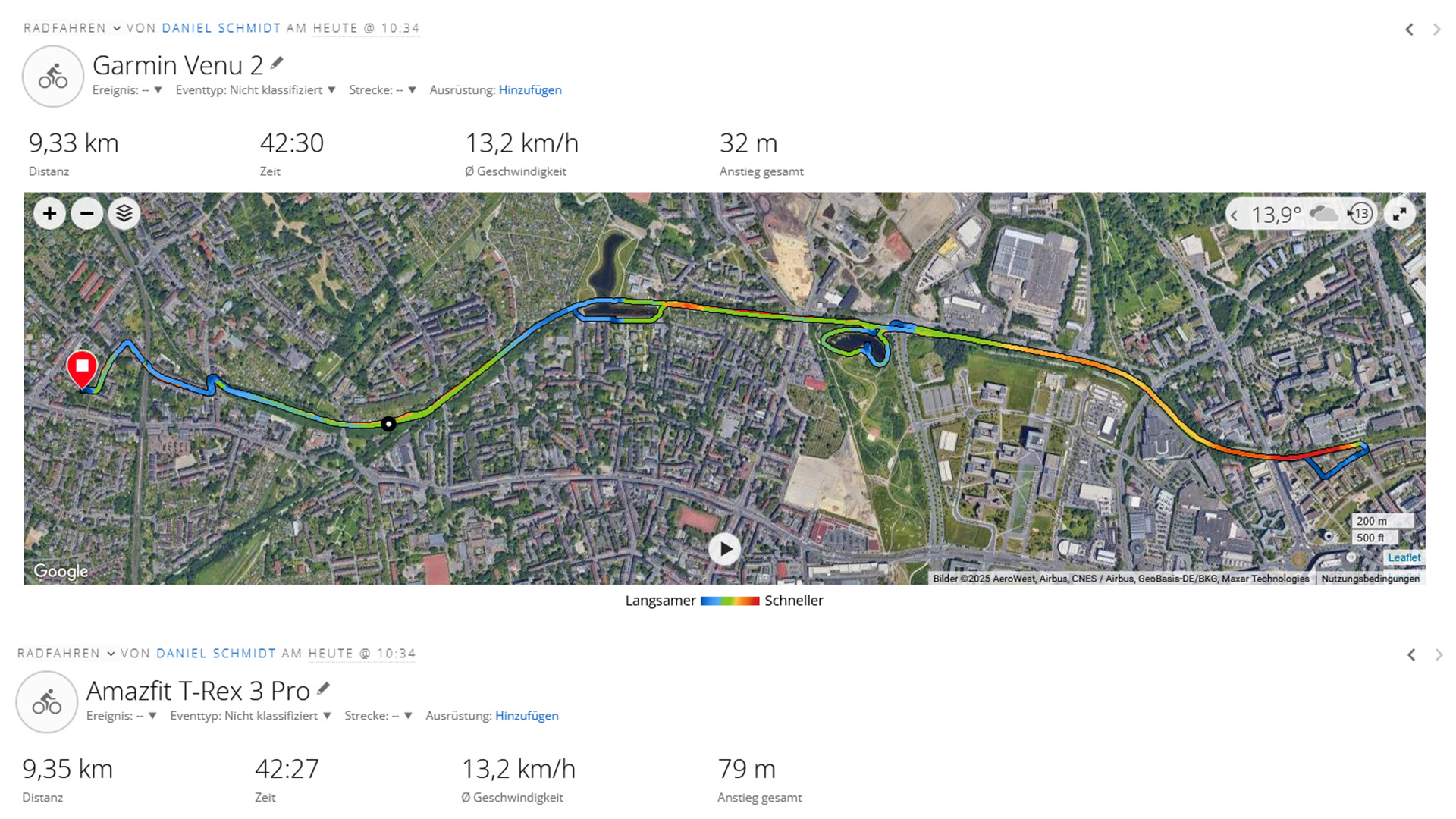De T-Rex 3 Pro biedt plaatsbepaling via zes satellietsystemen zoals GPS. In de test kwam de verbinding tot stand zonder lange wachttijden. De vastgestelde nauwkeurigheid is hoog, ook in vergelijking met een Garmin Venu 2 als referentie. Er waren alleen grote afwijkingen bij het bepalen van de afgelegde hoogtemeters tijdens een fietstocht.