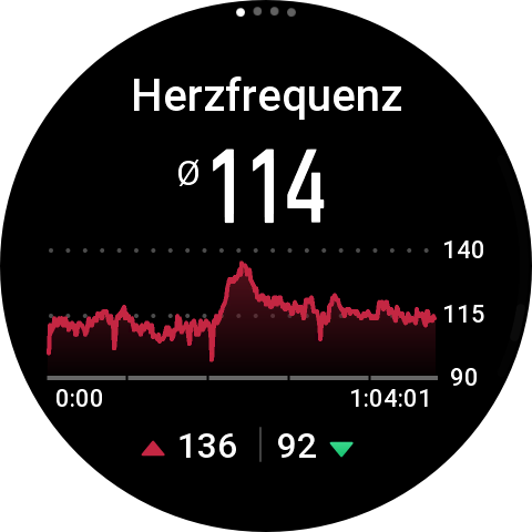 Wat betreft hartslag concurreert de smartwatch met een Polar H120 borstband, met wiens metingen hij grotendeels overeenkomt als referentiewaarden. De resultaten voor de hartslag in rust waren volledig consistent. Er waren grotere verschillen in de gemiddelde hartslag. De metingen lagen hier tot 10 slagen onder de referentie. Dit leidt tot een totale afwijking van 2,6 procent, die ook terug te vinden is in de dynamische curve.