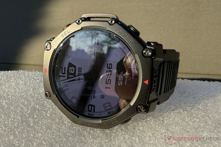 Volgens de fabrikant bereikt het met saffierglas beschermde scherm een piekhelderheid van 3.000 nits. Dat is 50 procent meer dan de 2.000 nits helderheid van de T-Rex 3. Hoewel wij slechts een waarde van 2.650 nits in het midden hebben gemeten, is dit nog steeds goed voor de leesbaarheid in zeer heldere omgevingen, bijvoorbeeld in direct zonlicht.