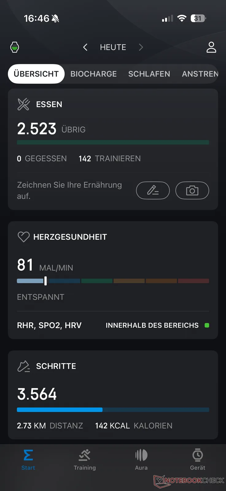 Zoals altijd hangt het uithoudingsvermogen af van verschillende instellingen en de intensiteit van het gebruik. Tijdens de testperiode activeerden we meestal elke 5 minuten de automatische hartslagmonitoring en de rest van de gezondheidstracking. De helderheid van het scherm werd automatisch aangepast en het scherm werd na 8 seconden uitgeschakeld. Met deze instellingen ging de Amazfit 3 Pro ongeveer twee weken mee op één batterijlading wanneer alleen af en toe een sporttracking zonder GPS werd gebruikt.