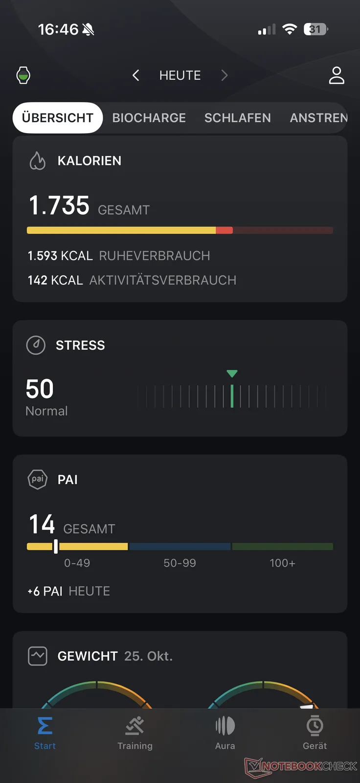 Er is ook de zogenaamde PAI-waarde. Dit is een evaluatie van fysiologische activiteit op basis van onder andere hartslaggegevens. De waarde geeft een overzicht van de activiteiten van de afgelopen 7 dagen en zou volgens de fabrikant idealiter boven de 100 punten moeten liggen.