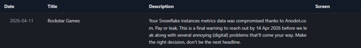 Volgens RansomLook.io en CyberSec Gurubrachten de aanvallers de perimeter van Rockstar niet rechtstreeks in gevaar. In plaats daarvan maakten ze naar verluidt gebruik van een geautomatiseerde integratie via Anodot, een bewakingsplatform van derden voor cloudkosten. De groep beweert toegang te hebben gekregen tot Rockstar's Snowflake-omgeving (die het bedrijf gebruikt om, naast andere gegevens, analytische gegevens en spelertelemetrie op te slaan en te beheren) door authenticatietokens van Anodot te verzamelen. Met deze methode kunnen aanvallers de standaard multi-factor authenticatie omzeilen door gebruik te maken van legitieme servicetokens die langere tijd geldig blijven. Dit type kwetsbaarheid in de toeleveringsketen lijkt eind 2025 en begin 2026 een primaire vector voor ShinyHunters te zijn geworden.
