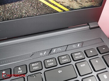 Op deze laptop kunt u kiezen tussen mechanische toetsen, zoals de toetsen die ons testmodel heeft, of een "stil membraantoetsenbord". Beide zijn voorzien van RGB-achtergrondverlichting, maar alleen het mechanische toetsenbord heeft individueel verlichte RGB-toetsen. De stillere membraanversie heeft alleen RGB-verlichting in één zone.