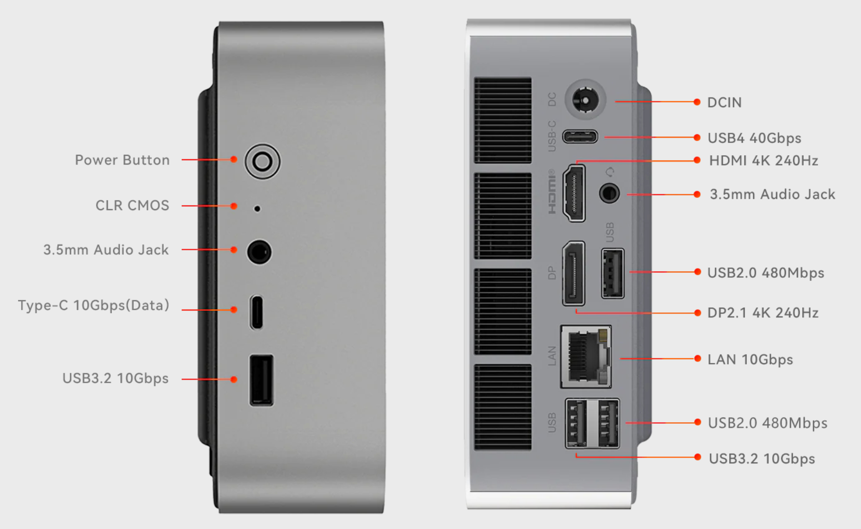 Beide configuraties zijn voorzien van AMD's nieuwe Ryzen AI 9 HX 470 APU plus M.2 2280 en SODIMM-sleuven voor respectievelijk PCIe 4.0 SSD's en DDR5-5600 RAM. Er is ook een 10 Gbps LAN aanwezig, net als een USB4-aansluiting en andere poorten. Beelink heeft bovendien een uitgebreid dampkamer koelsysteem ingebouwd om thermische throttling en overmatig ventilatorgeluid te minimaliseren.
