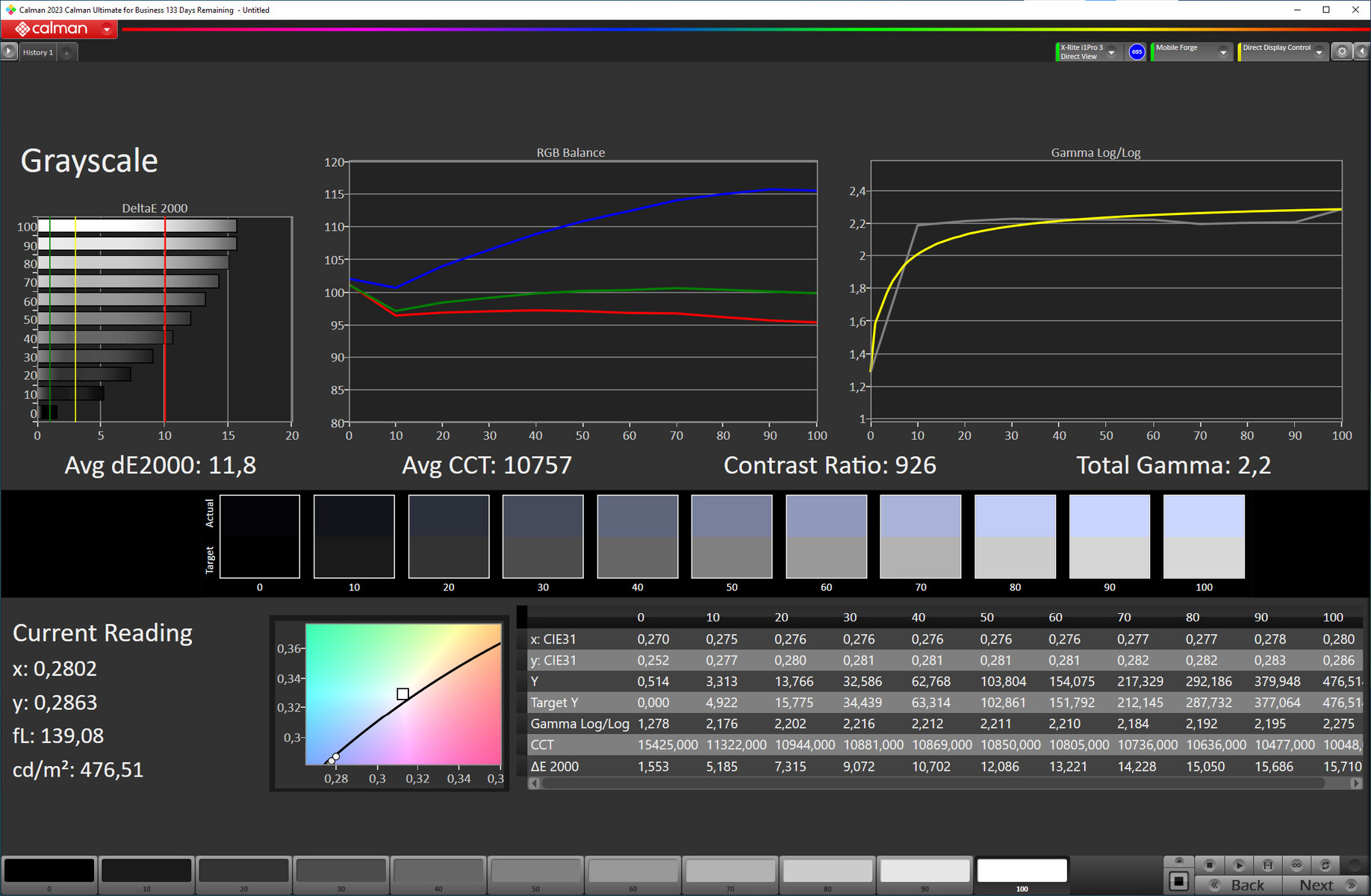 ΔE Greyscale Calman: 11.8 | ∀{0.09-98 Ø5}