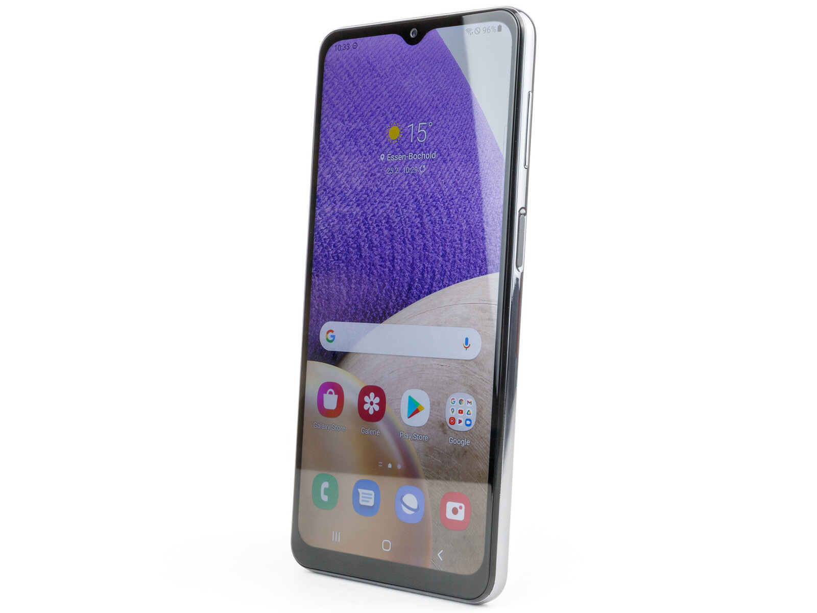 . Een echte camerabult is niet langer aanwezig. In plaats daarvan steken slechts drie van de cameraringen iets uit, waardoor hij nauwelijks wiebelt als hij plat op een tafel ligt. De kleuropties zijn zwart, wit, blauw en violet.Het scherm wordt aan de voorkant beschermd door Corning Gorilla Glass 5; de achterkant is gemaakt van glasvezelversterkt plastic, en het frame heeft een metallic look maar is ook van plastic. De bouwkwaliteit van de Galaxy A32 is goed en overtuigt met smalle en gelijkmatige kierafmetingen. De Samsung smartphone ziet er echter nogal lomp uit in de hand en is relatief zwaar.