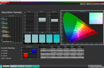 De helderheid is lager dan bij de voorganger, en in combinatie met het hogere zwartniveau is de contrastverhouding slechts gemiddeld. In de APL50 meting is de helderheid in het midden van het scherm nog lager met 509 cd/m², en het zwartniveau (0,67 cd/m²) neemt parallel daaraan iets toe, wat dan resulteert in een vrij zwakke contrastratio van 760:1. Als je de omgevingslichtsensor uitschakelt, heb je nog maar 460 cd/m² tot je beschikking. Hoewel deze sensor de helderheid van het scherm vrij snel aanpast, dimt hij het paneel toch iets te sterk naar onze smaak.