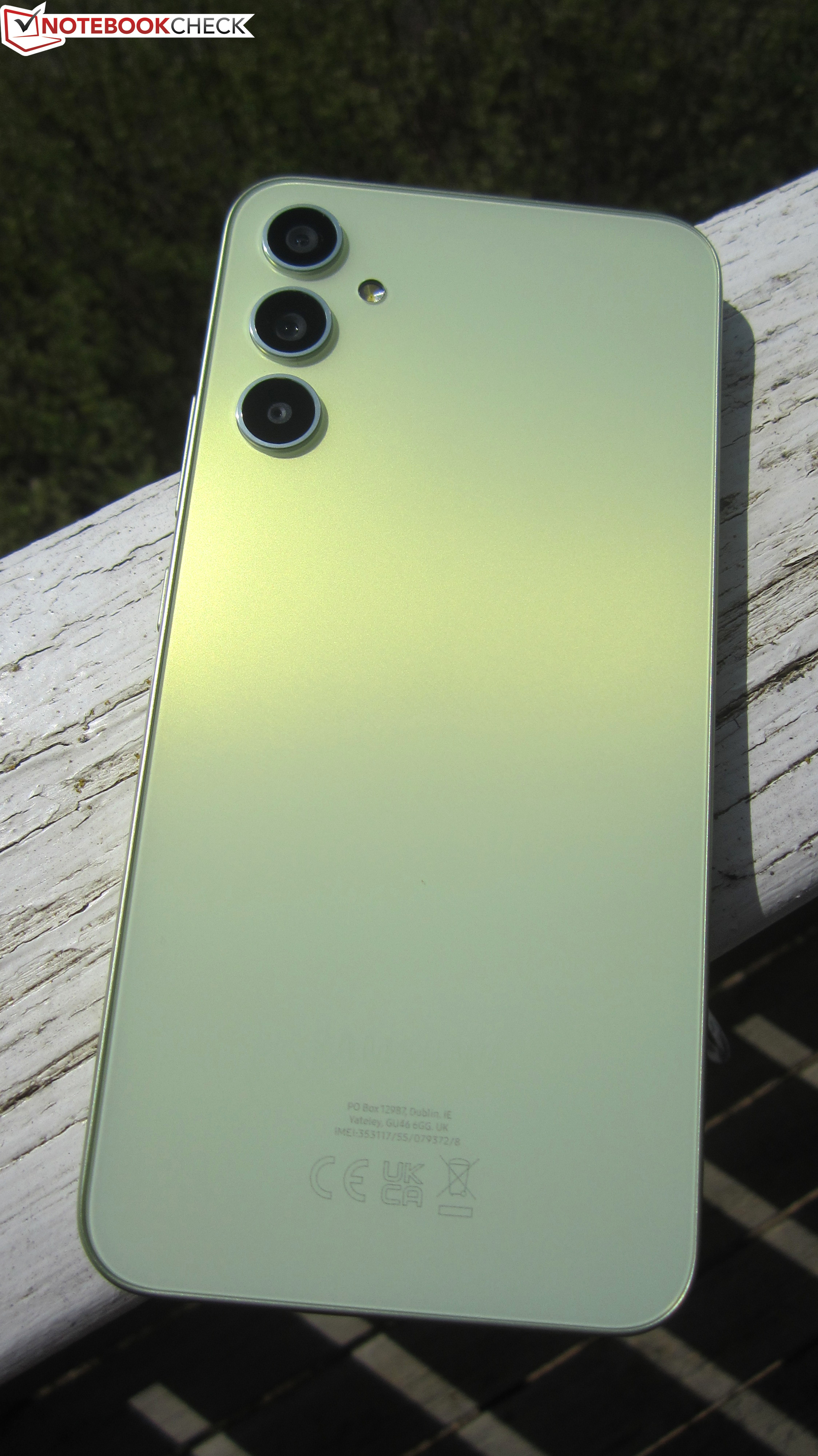 Afhankelijk van het omgevingslicht glinstert de achterkant van de Galaxy A34 5G in een licht metaalachtige tint. De kleureffecten zijn vooral uitgesproken in de kleurvariant Awesome Silver, terwijl ze subtieler zijn in Awesome Violet en de Awesome Lime van ons testtoestel. Visueel is de Samsung smartphone het meest onopvallend in de vierde kleurvariant, Awesome Graphite.
