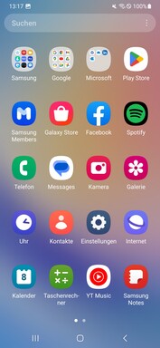 Van de 128 GB van ons testtoestel is iets minder dan 96 GB vrij bij de eerste keer opstarten. Dit komt door de ruimte die OneUI en de voorgeïnstalleerde Google- en Samsung-apps in beslag nemen, evenals het tiental voorgeïnstalleerde apps van derden zoals Disney+, LinkedIn, Pinterest en TikTok. Deze kunnen allemaal worden verwijderd als ze niet nodig zijn. OneDrive kan echter alleen worden gedeactiveerd, maar in ieder geval onzichtbaar worden gemaakt in de app-lade.