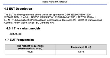 Het nieuwe en mogelijk definitieve lek keurt de Samsung SM-A546E/DS voor verkoop in markten zoals de Verenigde Staten als een 5G smartphone. Het toestel is nu ook gecertificeerd voor het gebruik van Wi-Fi 6 naast Bluetooth en NFC.