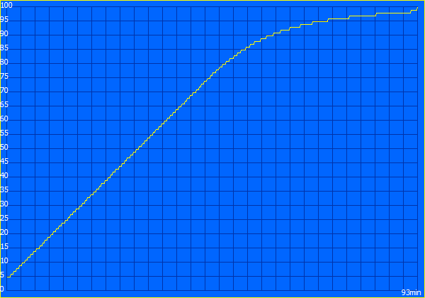 Hoewel de Galaxy Book6 Ultra met slechts 80,2 Wh de kleinste accucapaciteit in onze vergelijkingsgroep heeft, slaagt hij erin om indrukwekkende acculooptijden te halen, zelfs in de buurt van de MacBook Pro. Bij 150 nits duurt onze Wi-Fi-test bijna 17 uur en dus veel langer in vergelijking met elke andere Windows-concurrent. Bij volledige helderheid registreren we nog steeds bijna 8,5 uur, wat zelfs de MacBook Pro (die iets helderder is) met ongeveer een uur verslaat.