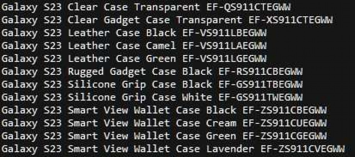 Andere kleuren die gekoppeld zijn aan Galaxy S23 Ultra accessoires zijn camel voor een leren hoesje en navy en oranje voor officiële siliconen hoesjes. Accessoires voor de standaard Samsung Galaxy S23 (zie afbeeldingen hieronder) zijn er in zwart, camel, groen, wit, crème en lavendel, afhankelijk van het product, terwijl er extra kleuropties van marine en oranje ook zijn vermeld voor de Galaxy S23 Plus. Het is een interessante zet van Samsung om de Ultra-kleuroptie van bordeauxrood te vervangen door lavendel, maar dit kan een poging zijn om merk-kopende millennials en Gen-Z shoppers te behagen, die er mede voor hebben gezorgd dat paars een populaire product kleur keuze in 2022
