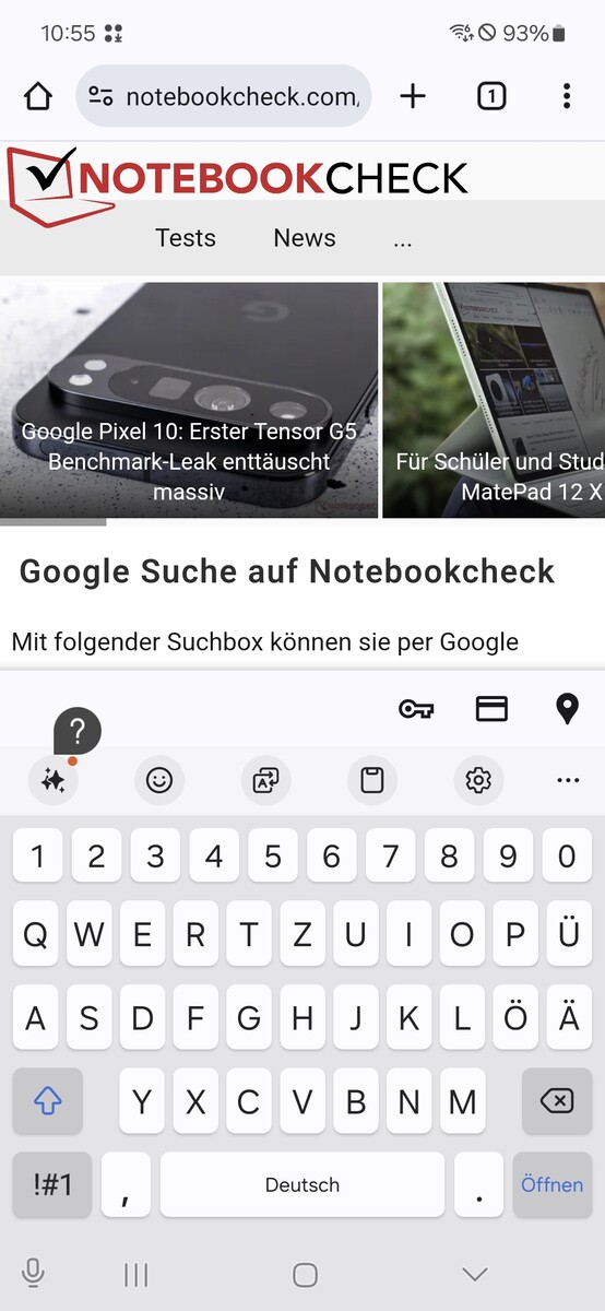 Biometric security is done via the front camera in 2D or an optical fingerprint sensor integrated into the OLED panel. In everyday situations, both options work very reliably, although the Face Unlock function is quite insecure.
